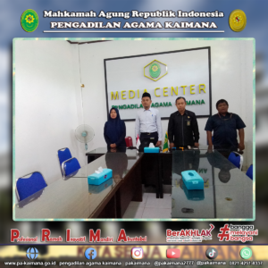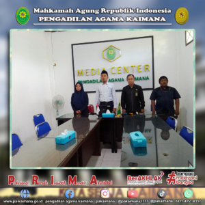 Kaimana, 19 Desember 2023, Ketua Pengadilan Agama Kaimana bersama Wakil Ketua, Panitera dan Sekretaris, mengikuti pembinaan bidang teknis dan administrasi yudisial secara daring, oleh Pimpinan Mahkamah Agung Republik Indonesia, Kegiatan yang berlangsung sejak Senin malam tersebut, diawali pembinaan oleh Plt. Sekretaris Mahkamah Agung Republik Indonesia Sugiyanto S.H., M.H., dari pukul 19.30 WIT dan dilanjutkan oleh para pejabat Eselon I, termasuk pembinaan dari Plt. Dirjen Badilag, Bambang H. Mulyono S.H., M.H. Acara pembinaan berlangsung hingga pukul 00.00 WIT.
