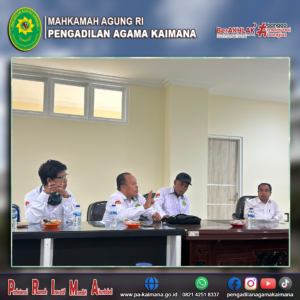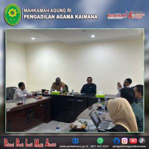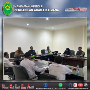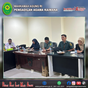 Kaimana, 14 Januari 2025, bertempat di ruang media center, Pengadilan Agama Kaimana menggelar rapat penting dalam rangka sosialisasi layanan bantuan hukum, sosialisasi e-court dan Keterbukaan Informasi Publik. Rapat yang berlangsung di ruang media center ini dihadiri oleh Ketua, Hakim, Panitera, Panmud Hukum, Staf Kepaniteraan dan Kepala Distrik serta Kepala KUA Distrik Se-Kabupaten Kaimana. Rapat dimulai pada pukul 09.30 WIT dan dipimpin langsung oleh Ketua Pengadilan Agama Kaimana, Saiin Ngalim.