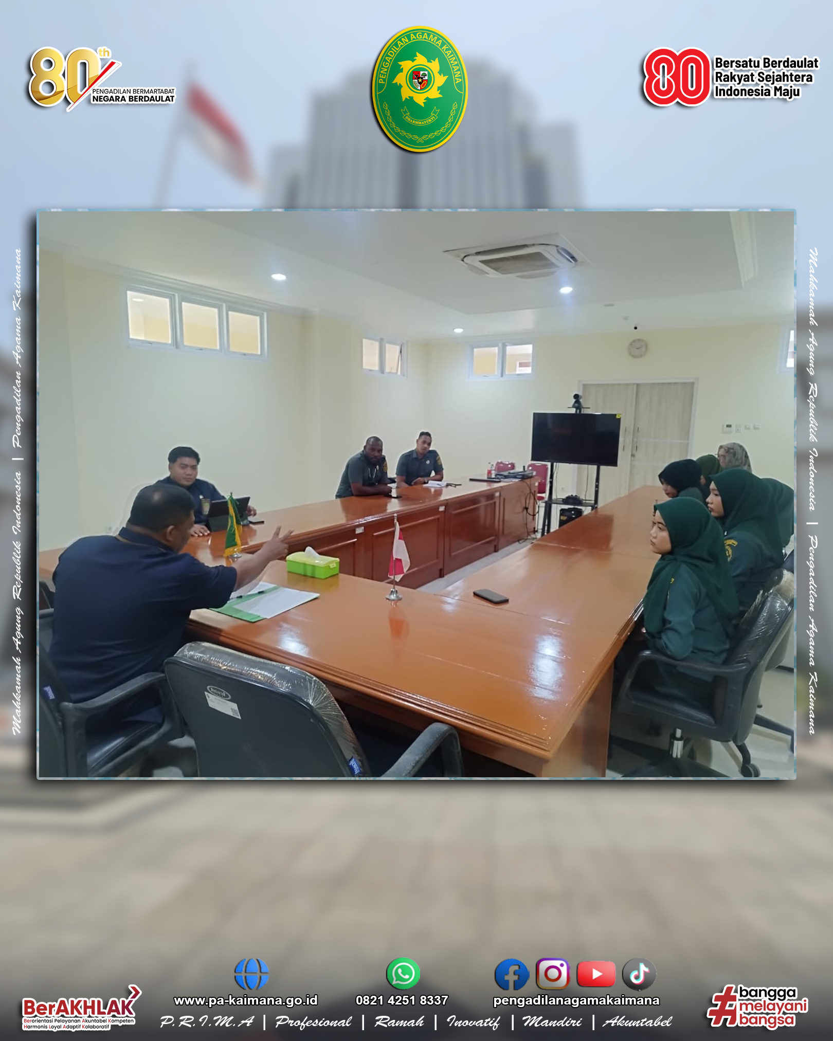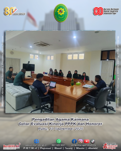 Kaimana, 10 September 2025 – Pengadilan Agama (PA) Kaimana menggelar rapat evaluasi kinerja bagi pegawai P3K dan tenaga honorer. Kegiatan ini dipimpin oleh Sekretaris PA Kaimana, Rustam Lengkas, S.HI, bertempat di Media Center. Rapat berlangsung sejak pukul 14.00 WIT pada Rabu sore.