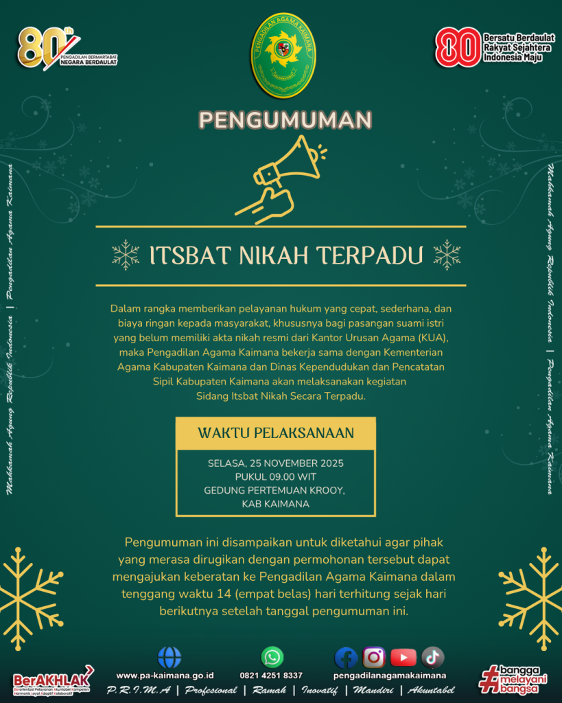 Pengumuman Sidang Itsbat Nikah Secara Terpadu Pengadilan Agama Kaimana